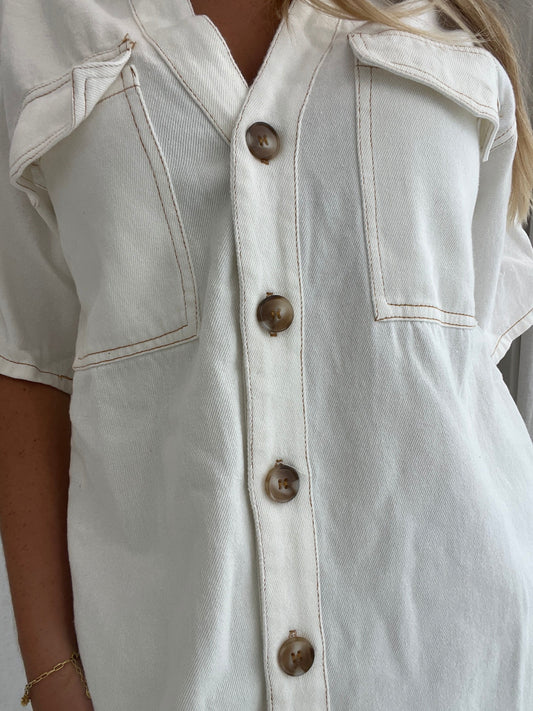 Ella Denim Dress - Beige