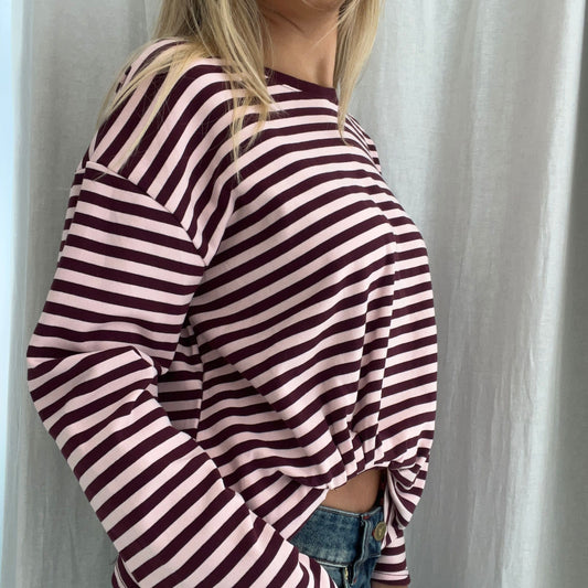 Long Sleeve Tuck Tee - Burgundy stripe