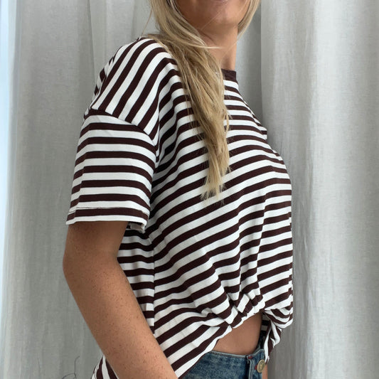 Claire Tuck Tee - Choc Stripe