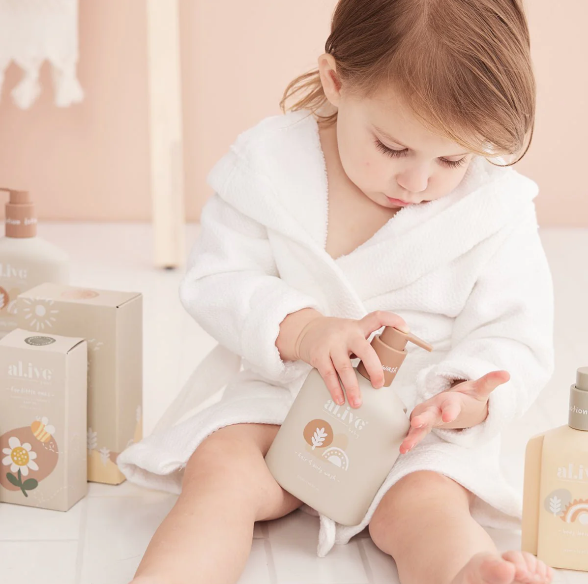 The al.ive baby Hair and Body Wash in calming oat is two-in-one product that is specially formulated to gently cleanse and nourish baby's skin and hair, and with the easy pump lids, bath time has never been easier.