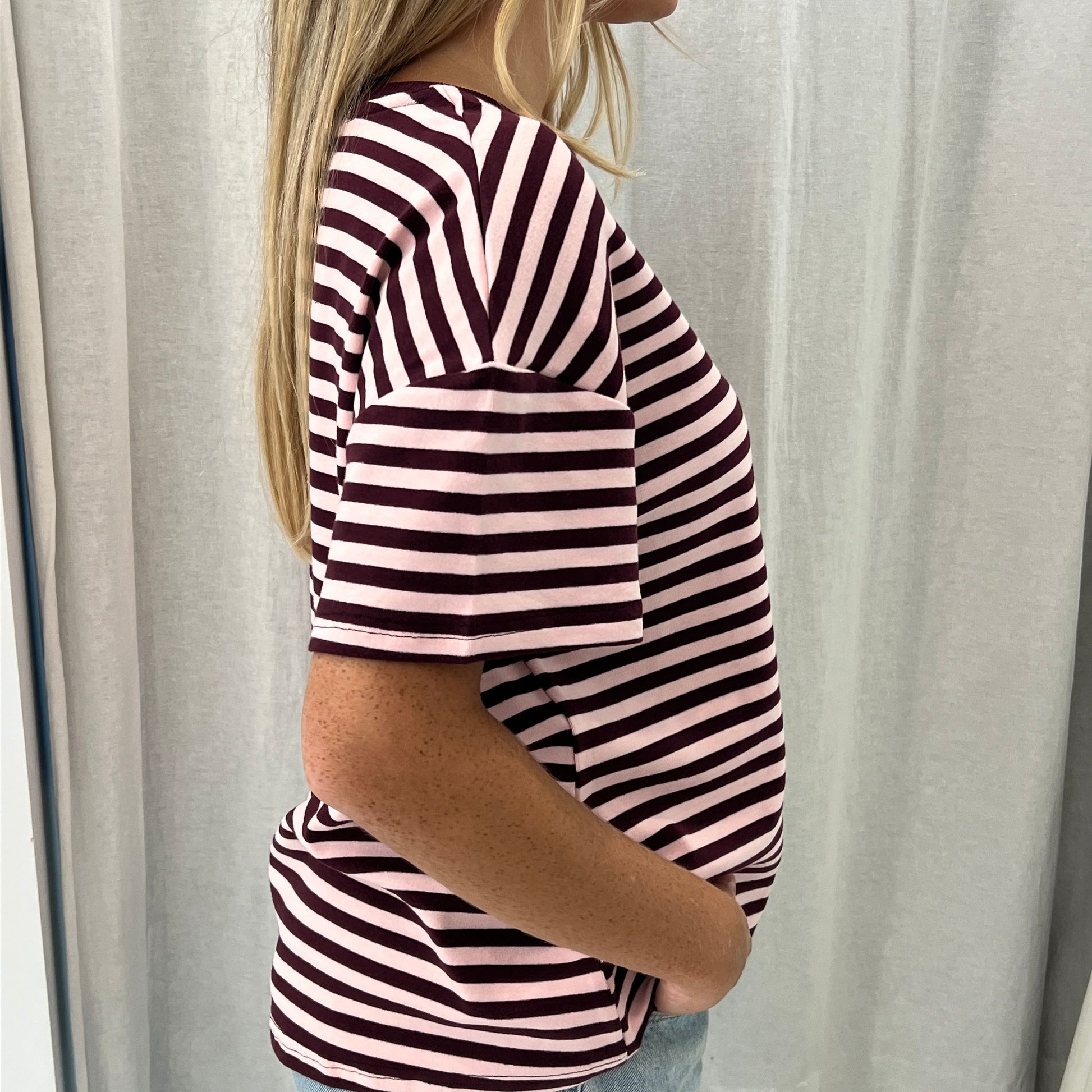 The perfect stripe tee , giving you the illusion and shape of it being tucked in, without the bulkiness.