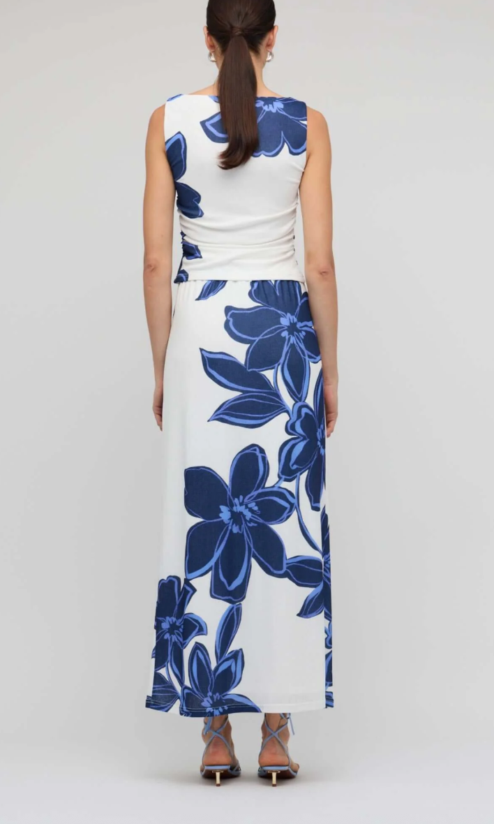 The Ethos Blue & White Floral Mesh Maxi Skirt by Staple the Label is a sleek, body-skimming style designed in a bold oversized floral print. Featuring a lined mesh fabrication with a touch of stretch, this slip-on skirt falls to a maxi length with a back split for easy movement. Style it with the Ethos Mesh Top for a co-ordinated set or pair with a crisp white shirt for effortless elegance.
