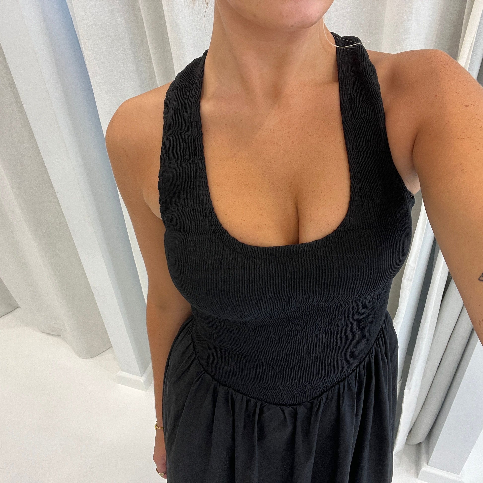 The moana dress features a flattering sinched material, that pulls in your waist and bust. This dress also has a racerback cut and a flowy skirt, perfect for summer time.