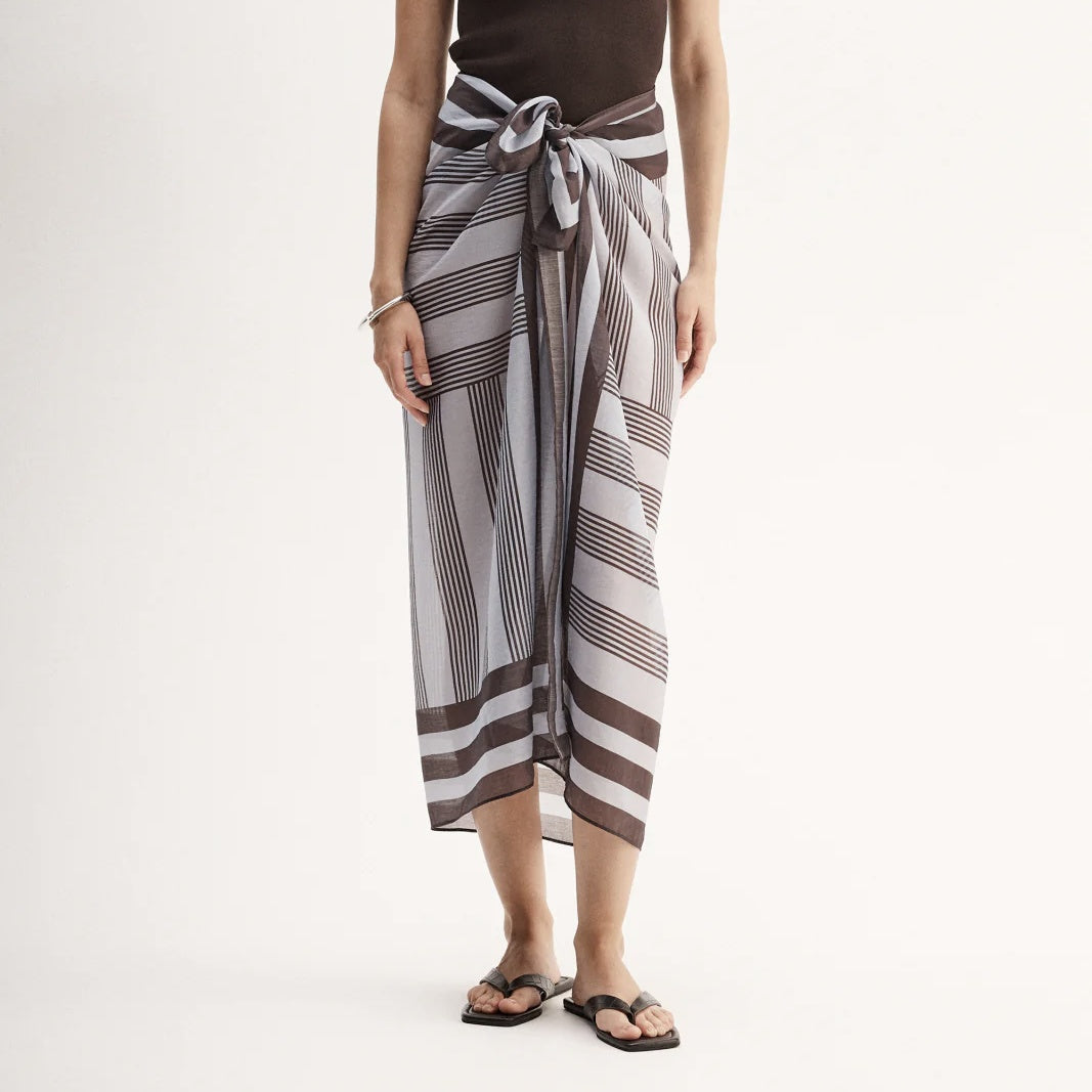 Made of a soft, semi-sheer fabric with a bold contrasting stripe print, the Pierre Sarong is a sleek and contemporary summer accessory. Ideal for beach and poolside layering, this piece is a vacation staple.
