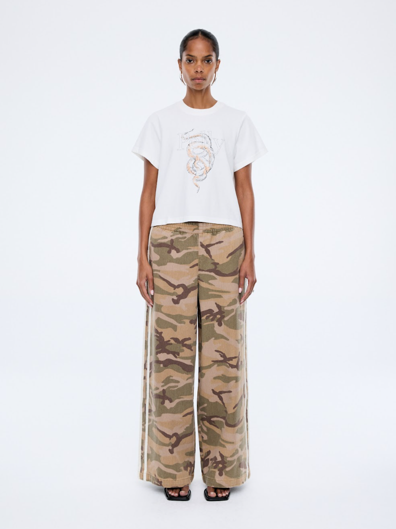 Street Energy. Everyday Ease. The Vintage Snake Baby Tee is crafted from cotton jersey in vintage white with a relaxed, hip-length cut. Finished with vintage-inspired snake artwork and Ena Pelly branding for a cool, grounded finish.